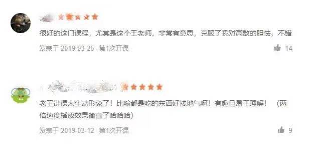 王老师认为,在线教育对于大众还是非常必要的,因为慕课作为一个开放的在线教育平台,有非常大的课堂容量。“对于一部分高校的在校学生来说,由于教育资源的不平衡等种种原因,其实是需要一些稍有质量的在线课程。”“反馈比较热烈的大部分是外校的学生,还有很多是已经离开学校的人。比如说这几年非常热门的IT行业,这其中需要的基本数学工具还是蛮多的。他们在工作中遇到涉及数学的问题,需要回来复习一下,重新充电。”