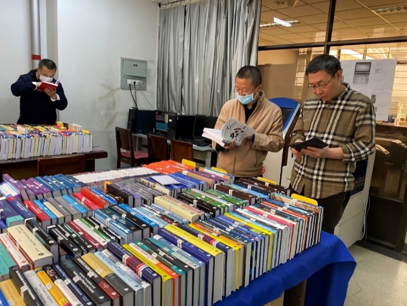 数学学院图书小组的刘勇教授、杨磊教授以及计算数学系的周铁教授在开展后,作为第一批读者到达书展现场,他们热情地帮助学院图书馆挑选书籍,高度肯定了本次活动的意义。