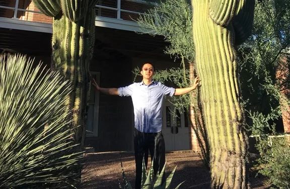 2019年李驰老师在美国普渡大学校园内与Neil Armstrong雕像合影