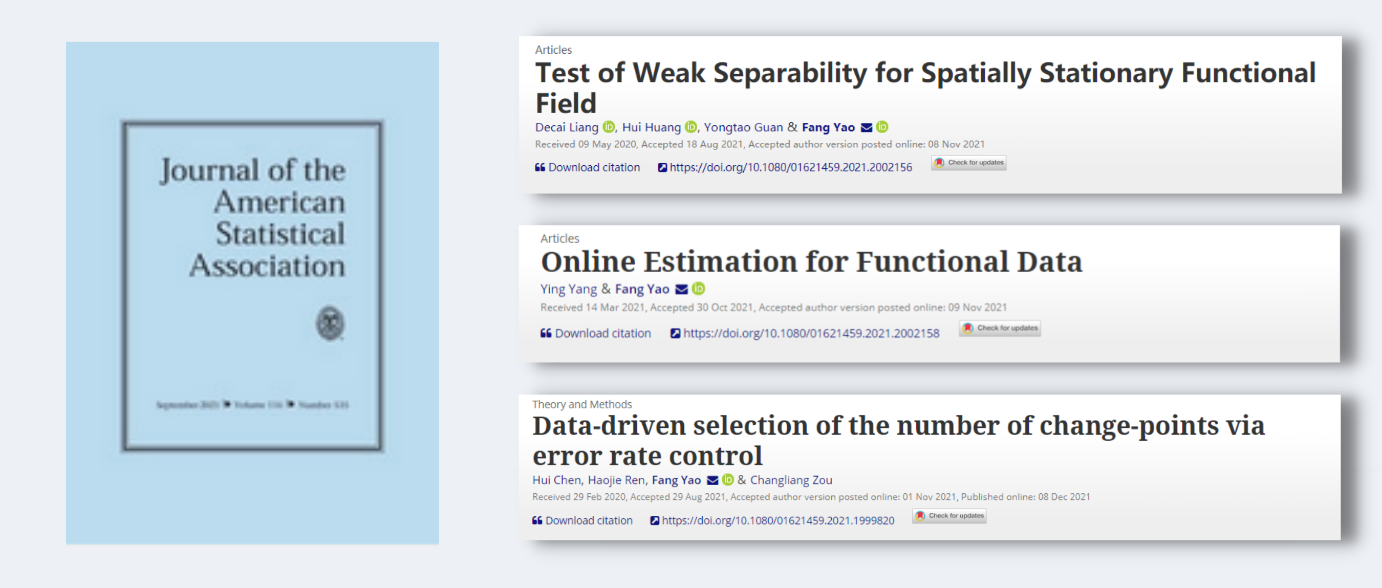 JASA为国际统计学界影响最为广泛的顶尖学术期刊之一,三篇论文的通讯作者均为姚方教授,现任麻豆视频