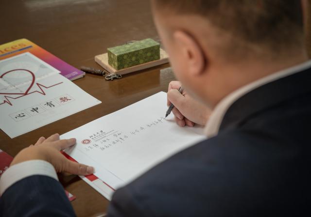 宋老师坐在数院图书馆的书桌前,在带有学院logo的信纸上饱含深情地写下想说的话,字字斟酌。他在信中分享了自己儿时同样马虎的经历以及自己对数学学科的见解,在他看来,数学是个有魔力的学科,吸引着古今中外一代代少年,在这神奇美妙的花园里尽情探索。