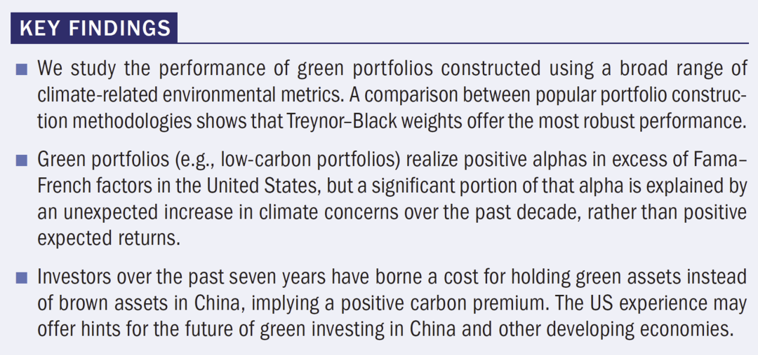 该项研究填补了目前绿色投资组合理论的空缺,同时为业界进行绿色投资实践提供了实用的方法论。
