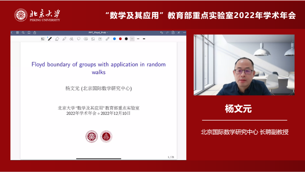 青年学者席瑞斌副教授、北京国际数学研究中心杨文元副教授也分别作了精彩的学术报告,汇报了自己的研究成果。范辉军教授、实验室副主任李若教授、王嵬教授主持学术报告会。