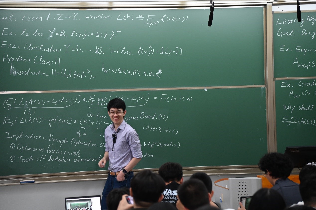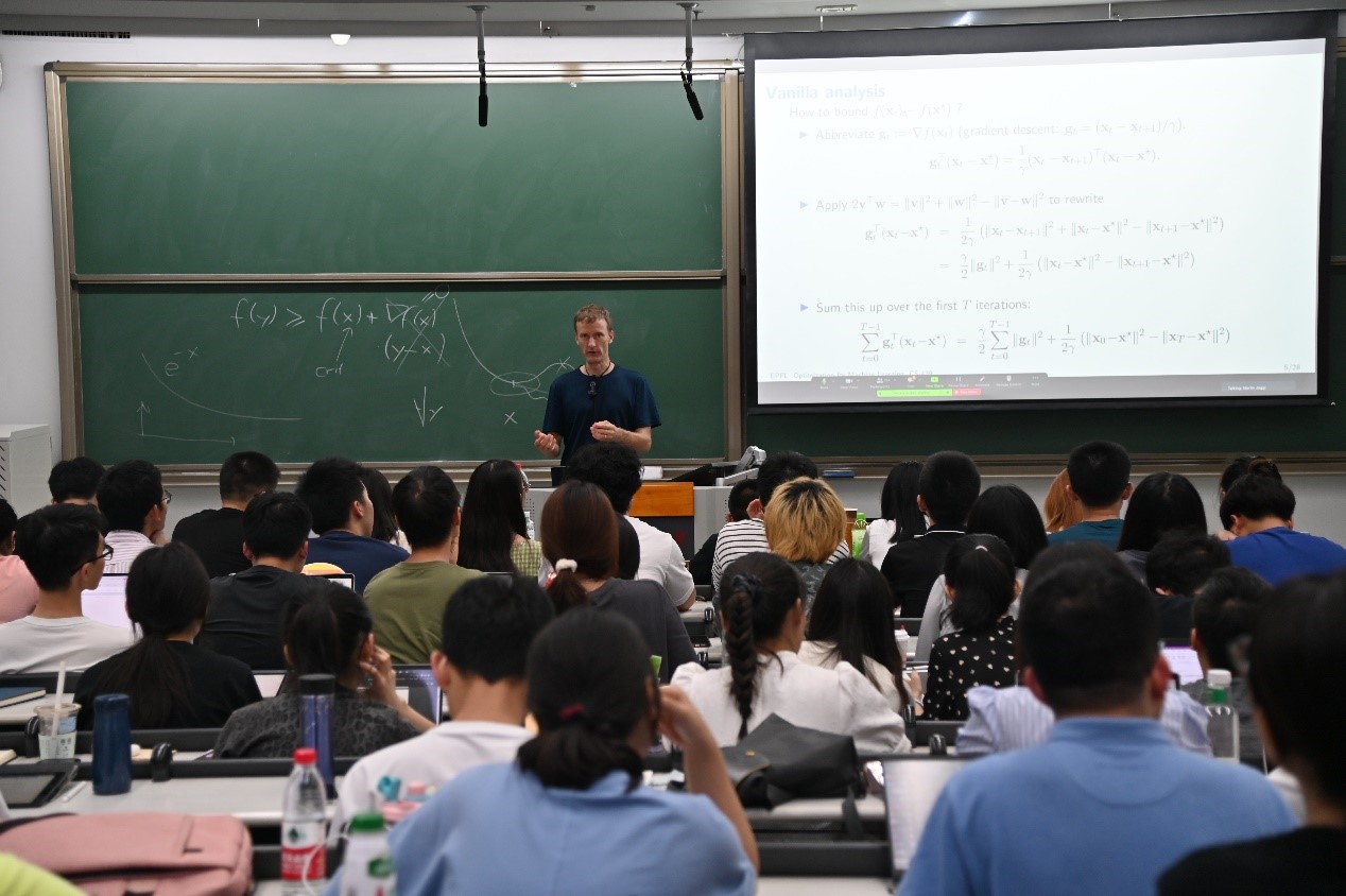其中,北京应用物理与计算数学研究所的王涵研究员讲授课程“分子动力学模拟和深度学习”,介绍了分子动力学模拟的基本原理,以及深度学习方法在原子间相互作用建模和稀有事件采样等问题中的应用。牛津大学的Philip Maini教授讲授课程“Emergent Phenomena in Mathematical Models for Biology and Medicine”,介绍了数学生命科学研究中的基础理论、建模计算方法及前沿应用。洛桑联邦理工学院的Martin Jaggi教授讲授课程“机器学习的优化理论与算法”,介绍了适用于机器学习和数据科学中应用的现代优化方法。斯坦福大学的李志远助理教授讲授课程“深度学习理论”,介绍了深度学习优化理论和泛化理论的相关内容。