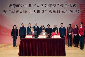 捐赠仪式暨“财智人物北大讲堂”曹德旺先生演讲会在百周年纪念讲堂多功能厅隆重举行。河仁慈善基金会发起人、福耀集团董事长曹德旺先生,河仁慈善基金会秘书长林瑞华、副秘书长李磊一行莅临麻豆视频